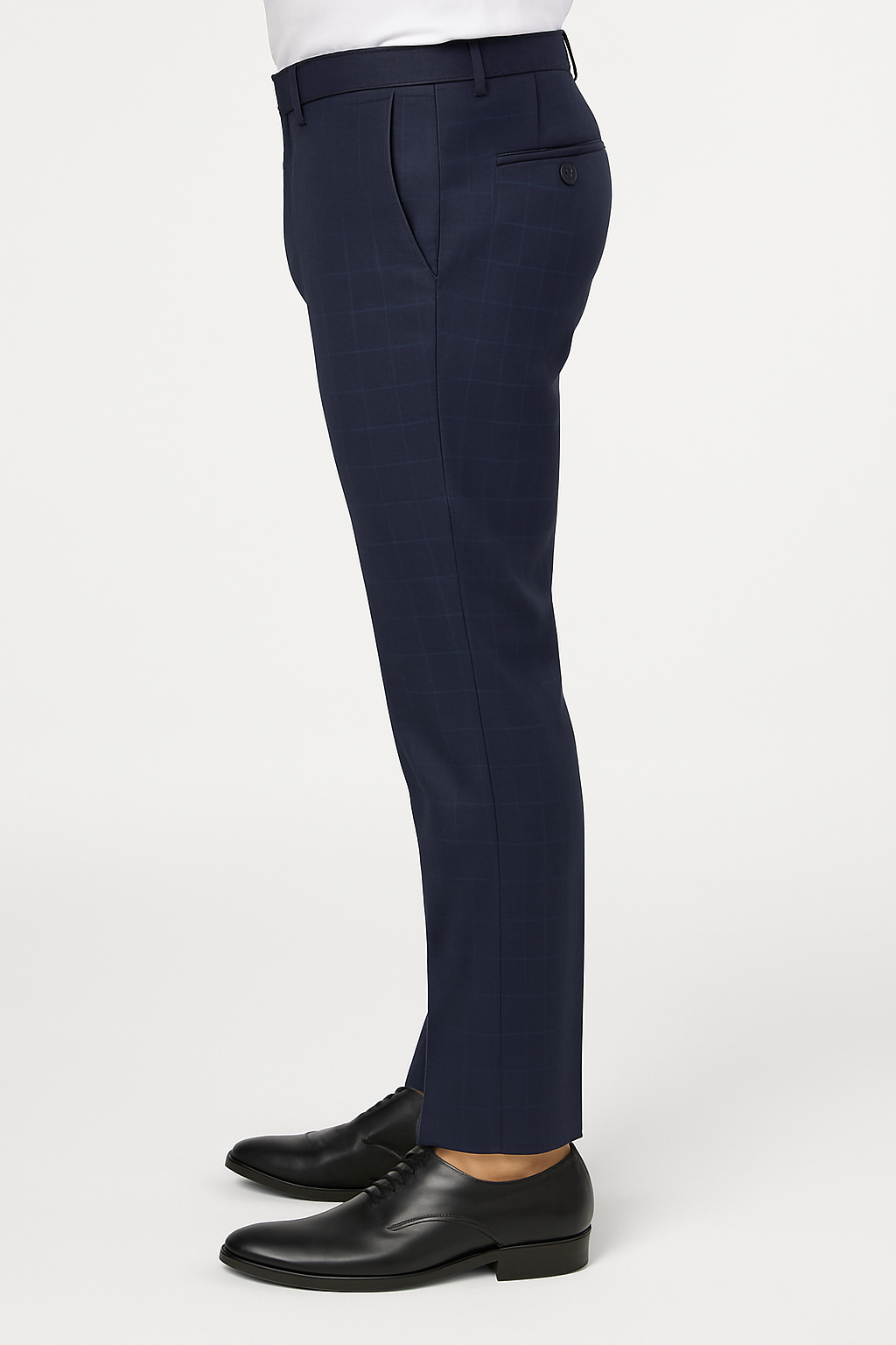 Sharp navy check trousers — slim fit with refined grid pattern for a smart, contemporary business look.