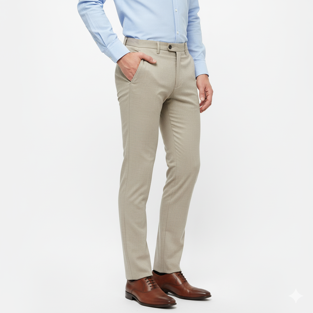 Men’s Beige Slim-Fit Stretch Formal Trousers