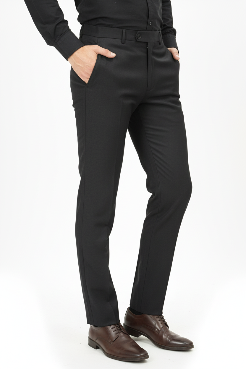 Men’s Black Slim-Fit Stretch Formal Trousers