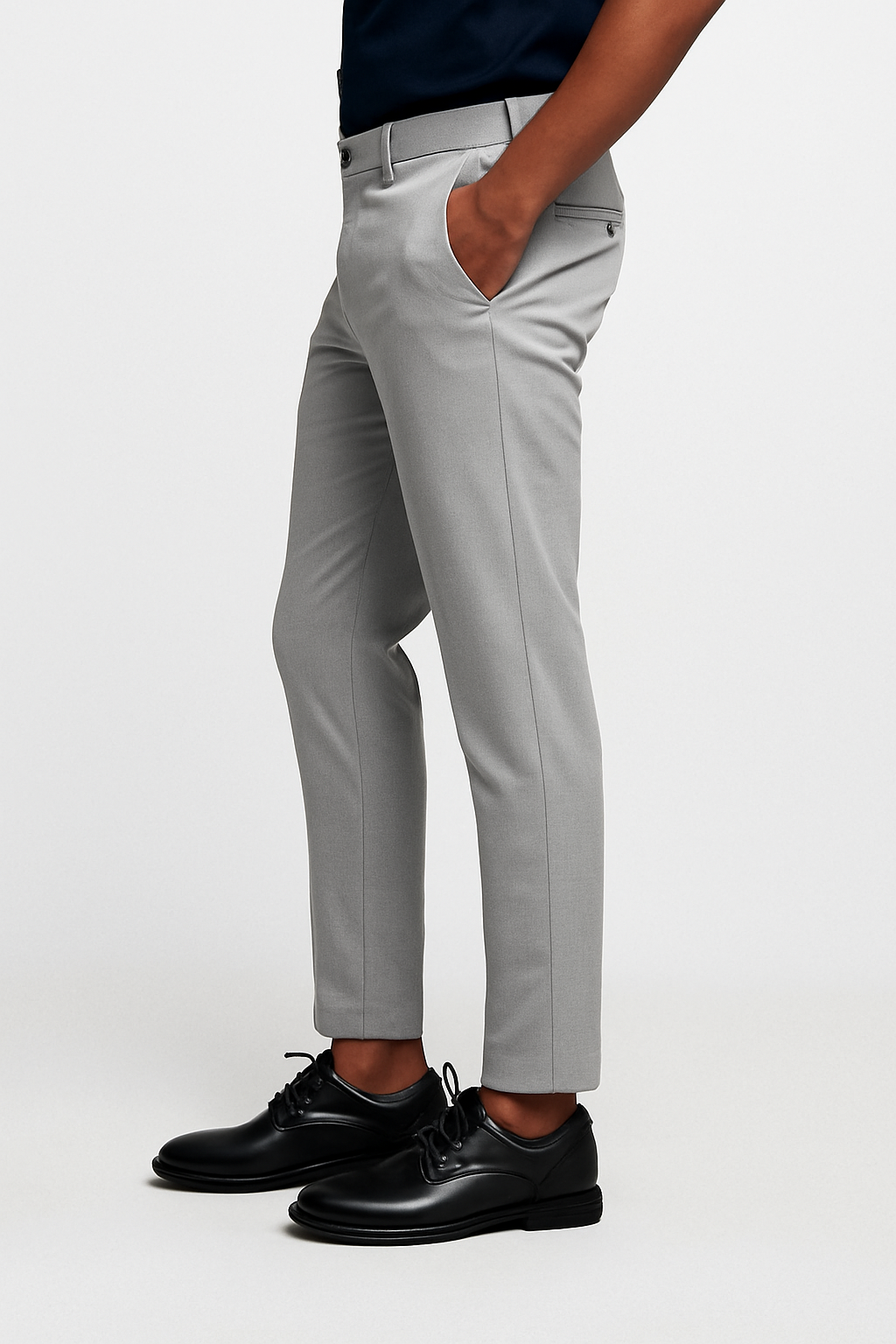 ₹799.00Original price was: ₹799.00.₹699.00Current price is: ₹699.00.Select optionsSharp, modern slim-fit trousers crafted in a light grey premium fabric, featuring a flat-front design, clean crease lines, belt loops, and a tailored silhouette perfect for office wear or formal occasions.