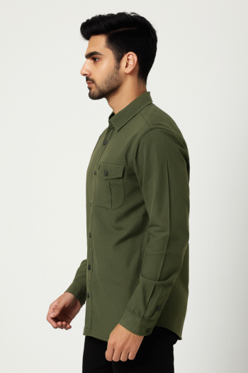 Olive Green Plain Casual Shirt