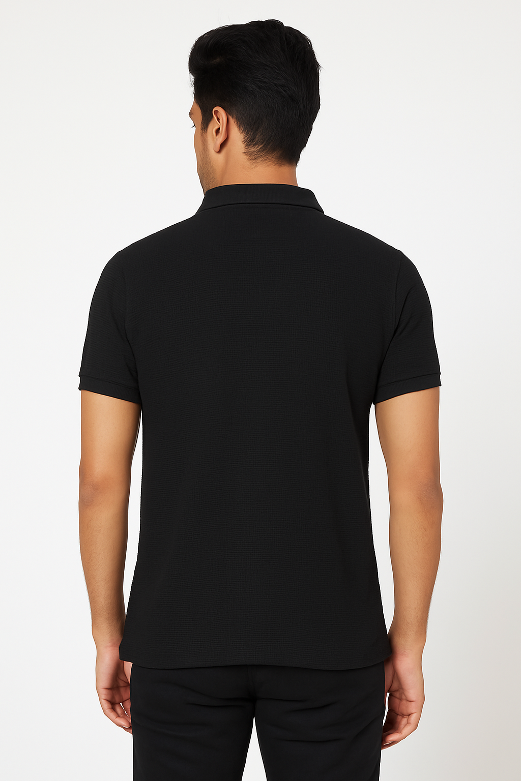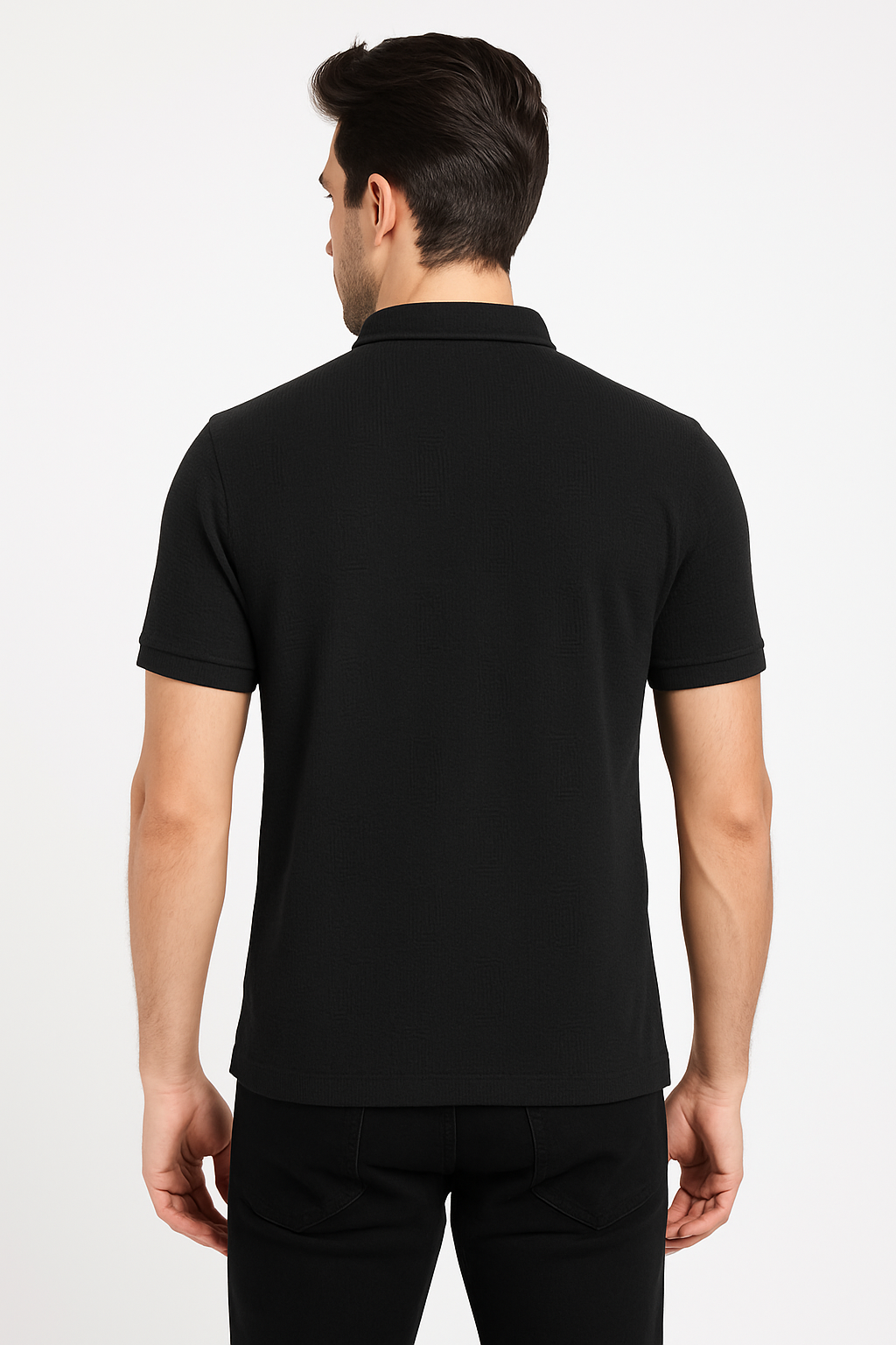 Classic Black Polo T-Shirt with Ribbed Detailing