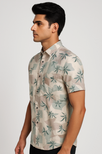 ₹599.00Original price was: ₹599.00.₹499.00Current price is: ₹499.00.Select optionsBeige cotton-linen shirt with tropical print and short sleeves — lightweight, stylish, and ideal for casual wear.