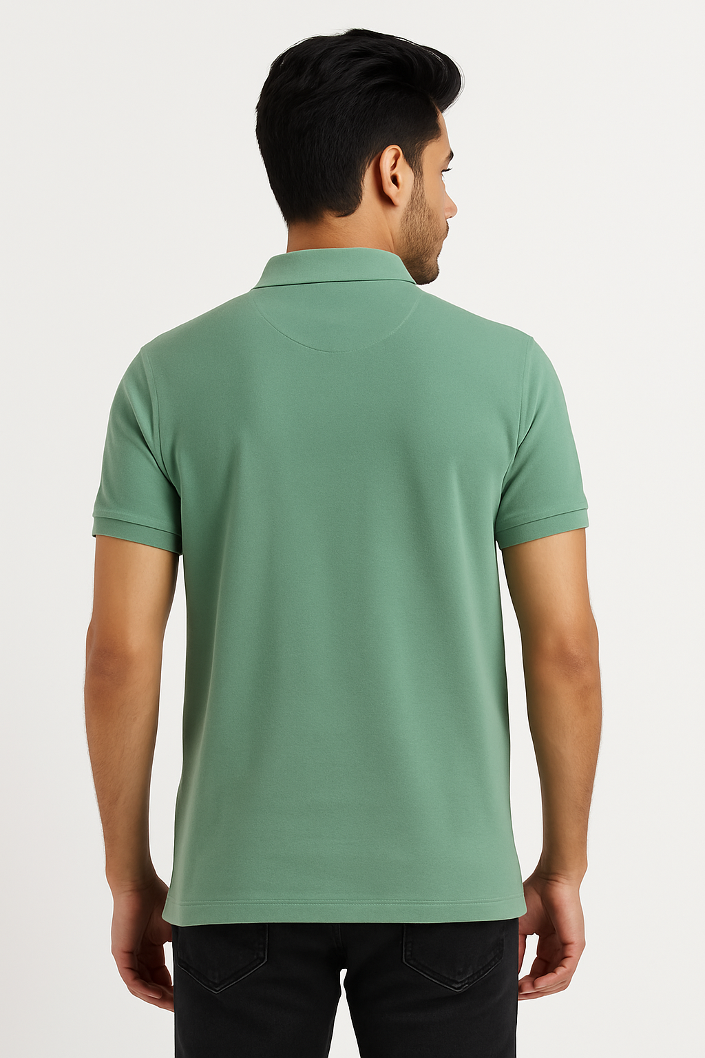 Men’s Sage Green Solid Polo T‑Shirt – Classic Piqué, Regular Fit