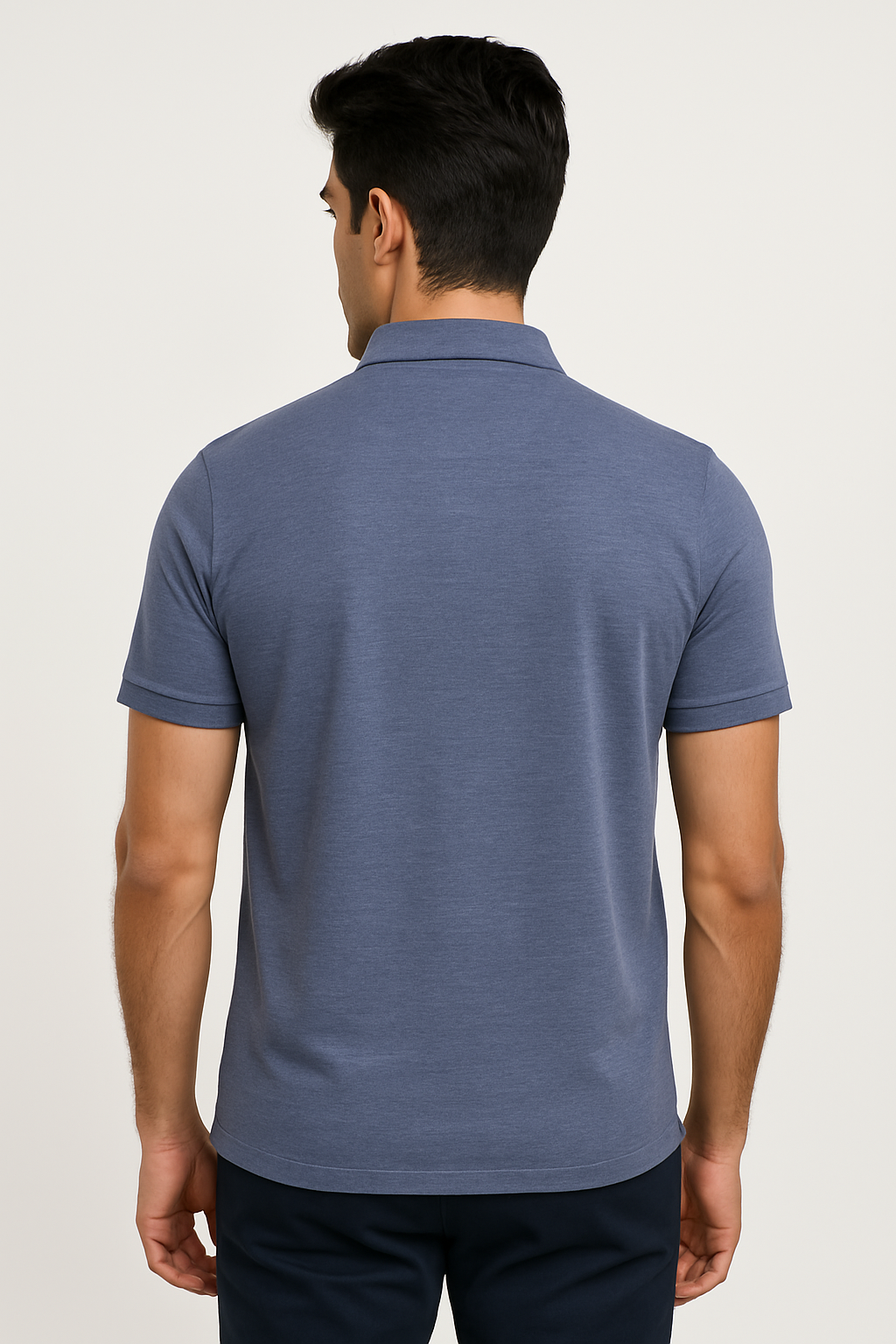 Men’s Steel Blue Graphic Polo T‑Shirt – Soft Knit, Classic Fit