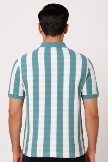 Men’s Teal & White Vertical Striped Polo T-Shirt