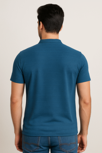 Men’s Teal Textured Polo T‑Shirt – Soft Knit, Regular Fit