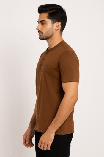 ₹599.00Original price was: ₹599.00.₹499.00Current price is: ₹499.00.Select optionsClassic black Henley t-shirt with a sleek textured finish, mandarin collar, and four-button placket — a perfect blend of comfort and style.