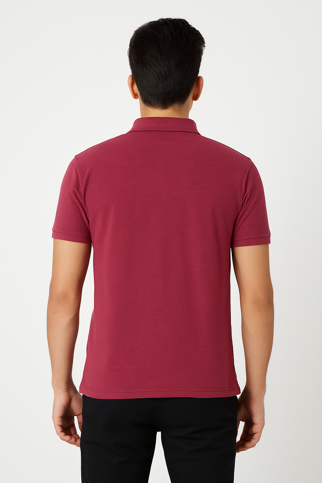 Men’s Maroon Solid Polo T‑Shirt – Soft Cotton Blend, Classic Fit