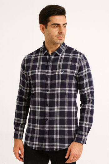 Men’s Navy Blue & Brown Checked Casual Shirt