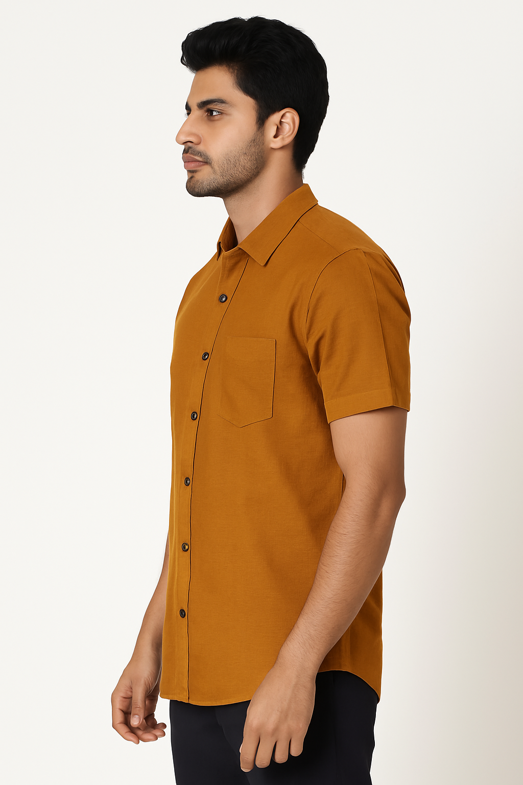 Men’s Solid Rust Brown Short Sleeve Shirt