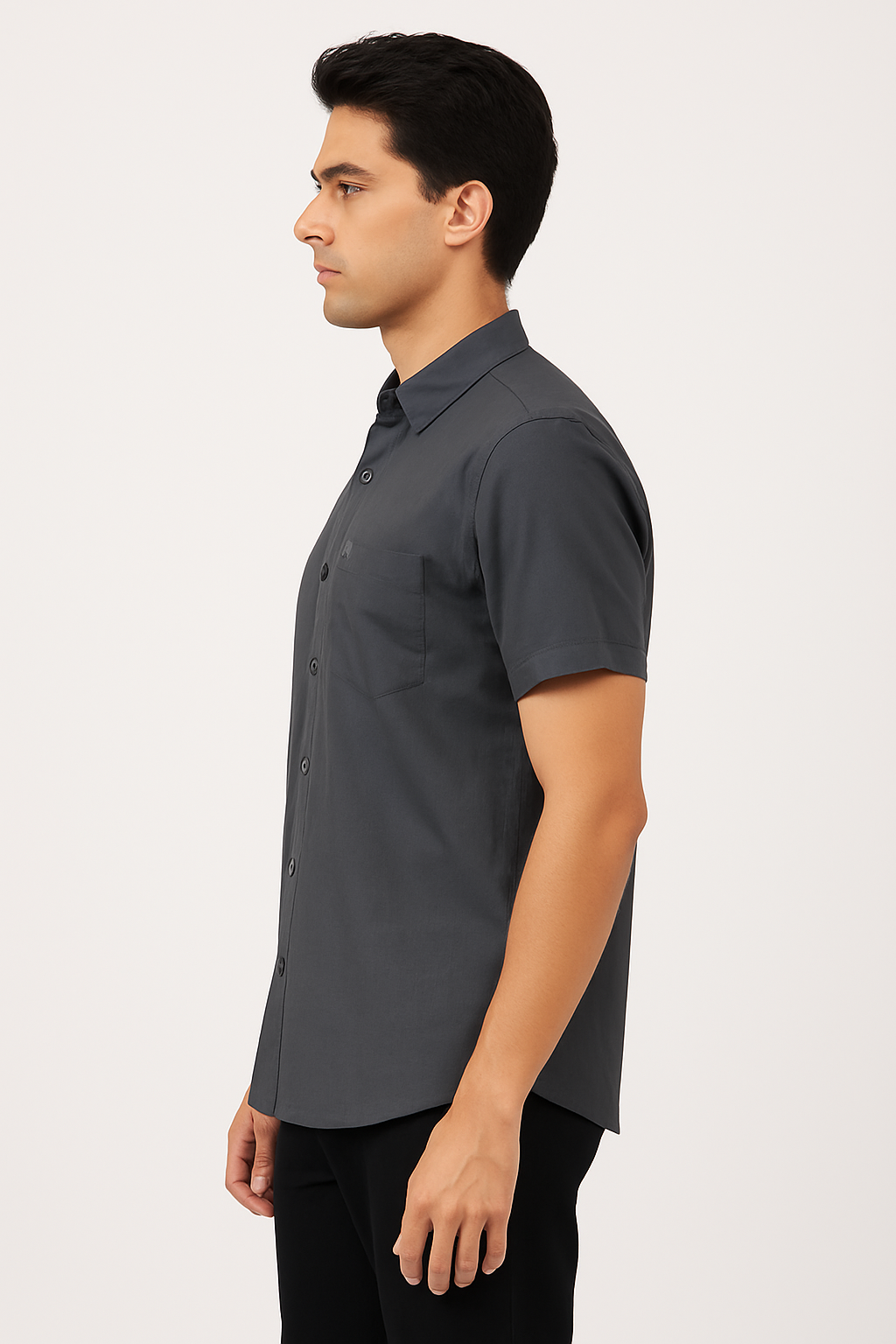 Men’s Solid Charcoal Grey Short Sleeve Casual Shirt