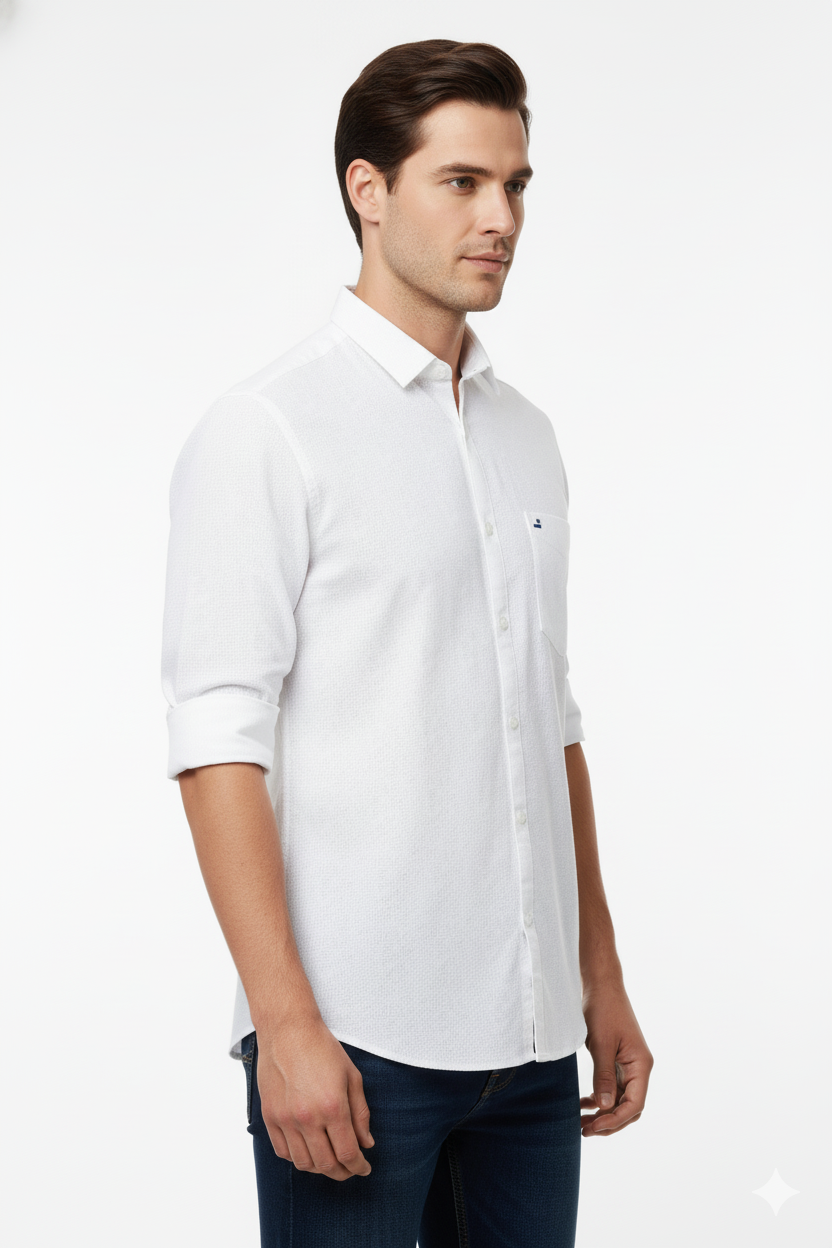 ₹599.00Original price was: ₹599.00.₹499.00Current price is: ₹499.00.Select optionsTimeless elegance meets modern comfort in this crisp white textured cotton shirt — perfect for both formal and casual wear.