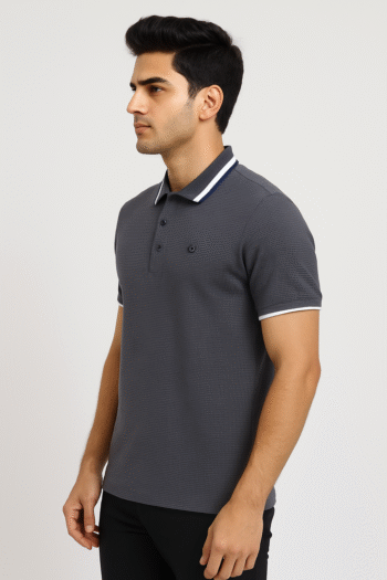 ₹599.00Original price was: ₹599.00.₹499.00Current price is: ₹499.00.Select optionsA refined navy polo t-shirt featuring a micro-textured pattern, contrast white tipping, and a sleek modern fit for everyday sophistication.