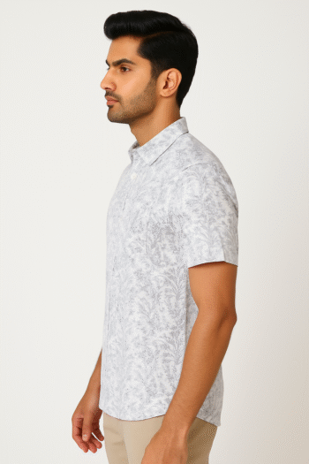₹599.00Original price was: ₹599.00.₹499.00Current price is: ₹499.00.Select optionsA light and breezy white short sleeve shirt with subtle grey floral prints, perfect for casual summer outings.