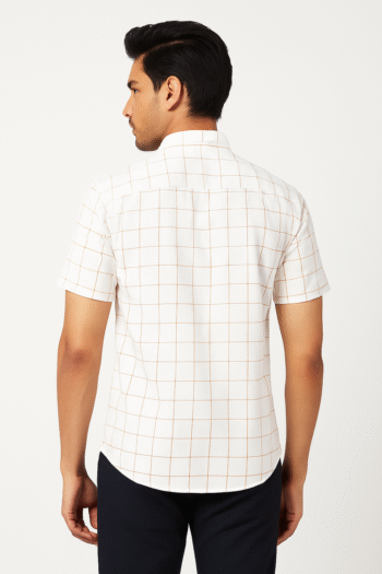 Men’s White and Beige Checkered Short Sleeve Shirt
