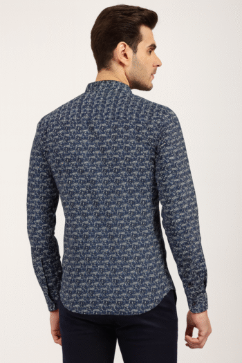 Men’s Navy Blue Printed Casual Shirt
