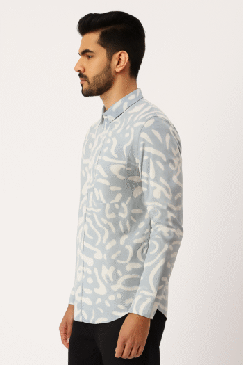 Men’s Light Grey Abstract Printed Casual Shirt