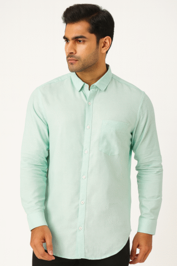 ₹599.00Original price was: ₹599.00.₹499.00Current price is: ₹499.00.Select optionsMint green slim fit solid casual shirt with chest pocket and button-down design—ideal for stylish everyday wear.