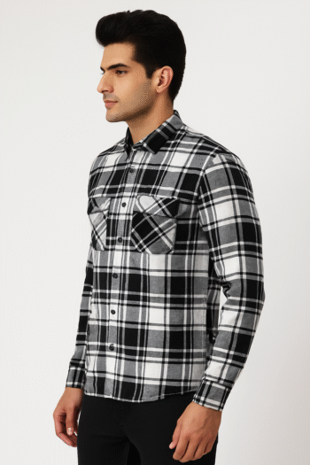 ₹599.00Original price was: ₹599.00.₹499.00Current price is: ₹499.00.Select optionsBlack checked casual shirt with long sleeves and chest pocket – ideal for casual and smart-casual wear.
