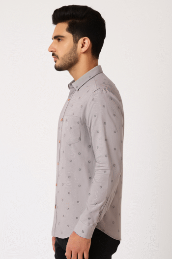 Light Grey Printed Slim Fit Casual Shirt for Men