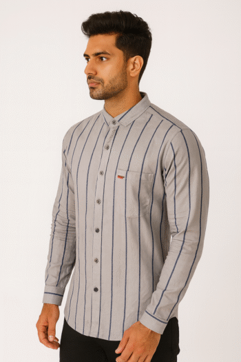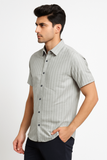 Men’s Grey Vertical Striped Casual Shirt