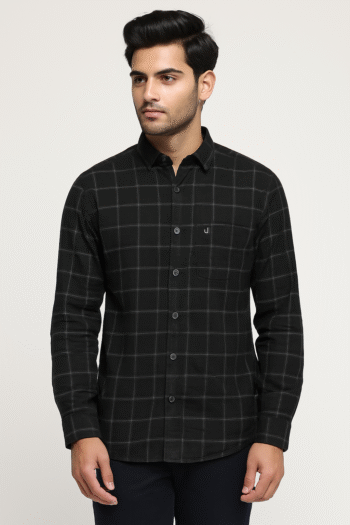 ₹599.00Original price was: ₹599.00.₹499.00Current price is: ₹499.00.Select optionsBlack checked casual shirt with long sleeves and chest pocket – ideal for casual and smart-casual wear.
