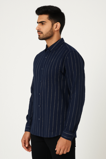Men’s Navy Blue Striped Casual Shirt