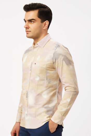 ₹599.00Original price was: ₹599.00.₹499.00Current price is: ₹499.00.Select optionsA trendy beige slim-fit shirt featuring a soft multicolor abstract print in pastel tones, full sleeves, and a clean button-down design—ideal for stylish casual outings and weekend wear.