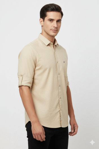 ₹599.00Original price was: ₹599.00.₹499.00Current price is: ₹499.00.Select optionsA smart beige cotton shirt with full sleeves, a button-down front, and a chest pocket — perfect for casual, office, or weekend wear.