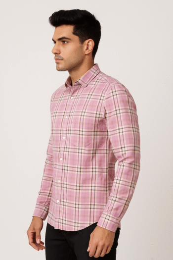 Men’s Pink Checkered Slim Fit Casual Shirt – Soft Cotton | Full Sleeves
