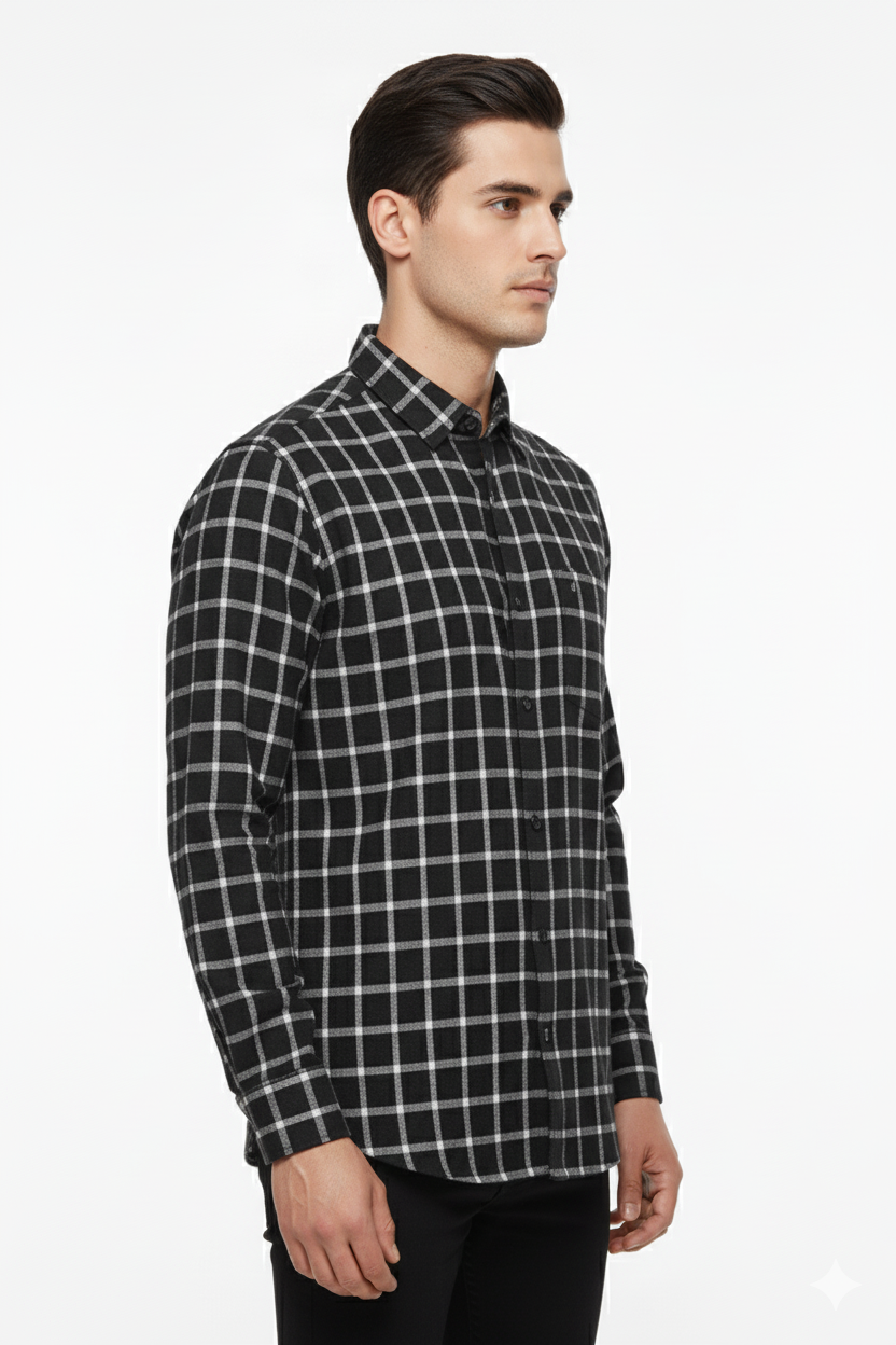 ₹599.00Original price was: ₹599.00.₹499.00Current price is: ₹499.00.Select optionsA modern black and grey checked shirt designed for men who value effortless style. Featuring a button-down front, full sleeves, and a classic collar — perfect for casual outings, office wear, or weekend plans.