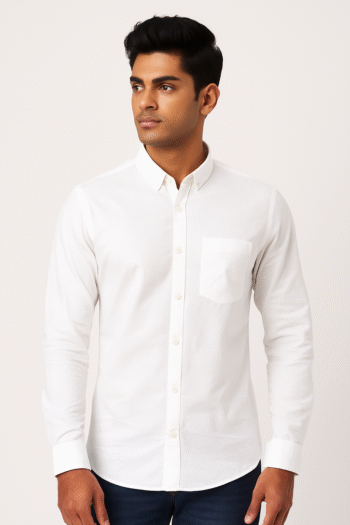 ₹599.00Original price was: ₹599.00.₹499.00Current price is: ₹499.00.Select optionsWhite slim fit button-down shirt with chest pocket—ideal for work, casual, and semi-formal looks.