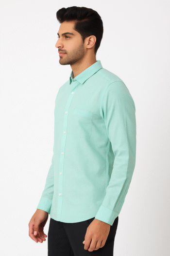 ₹599.00Original price was: ₹599.00.₹499.00Current price is: ₹499.00.Select optionsA mint green slim-fit solid shirt with long sleeves and a chest pocket — stylish and versatile for any occasion.