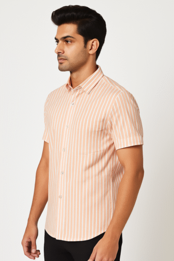 ₹599.00Original price was: ₹599.00.₹499.00Current price is: ₹499.00.Select optionsA stylish peach and white striped short-sleeve shirt designed for a cool, casual, and refined look.