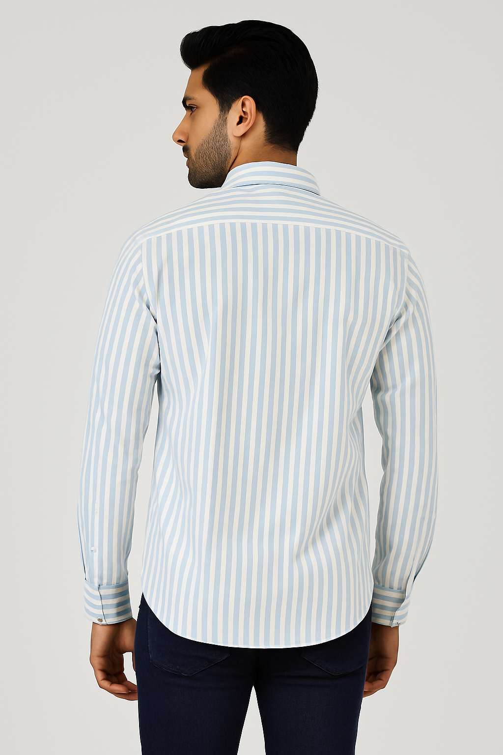 Men’s Sky Blue & White Striped Long Sleeve Casual Shirt
