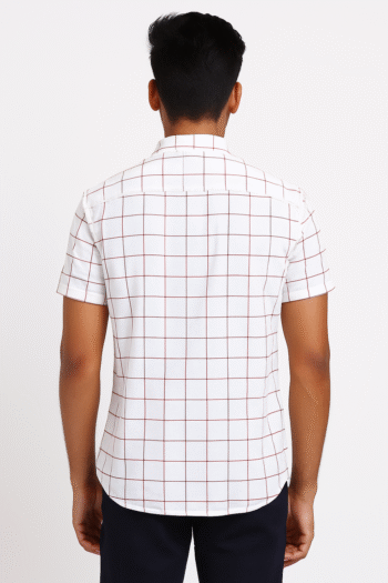 ₹599.00Original price was: ₹599.00.₹499.00Current price is: ₹499.00.Select optionsA white short-sleeve shirt with clean red windowpane checks, featuring a button-up front and chest pocket—perfect for casual and smart-casual styling.