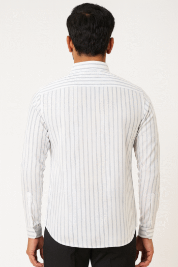 Men’s White & Grey Vertical Stripe Casual Shirt