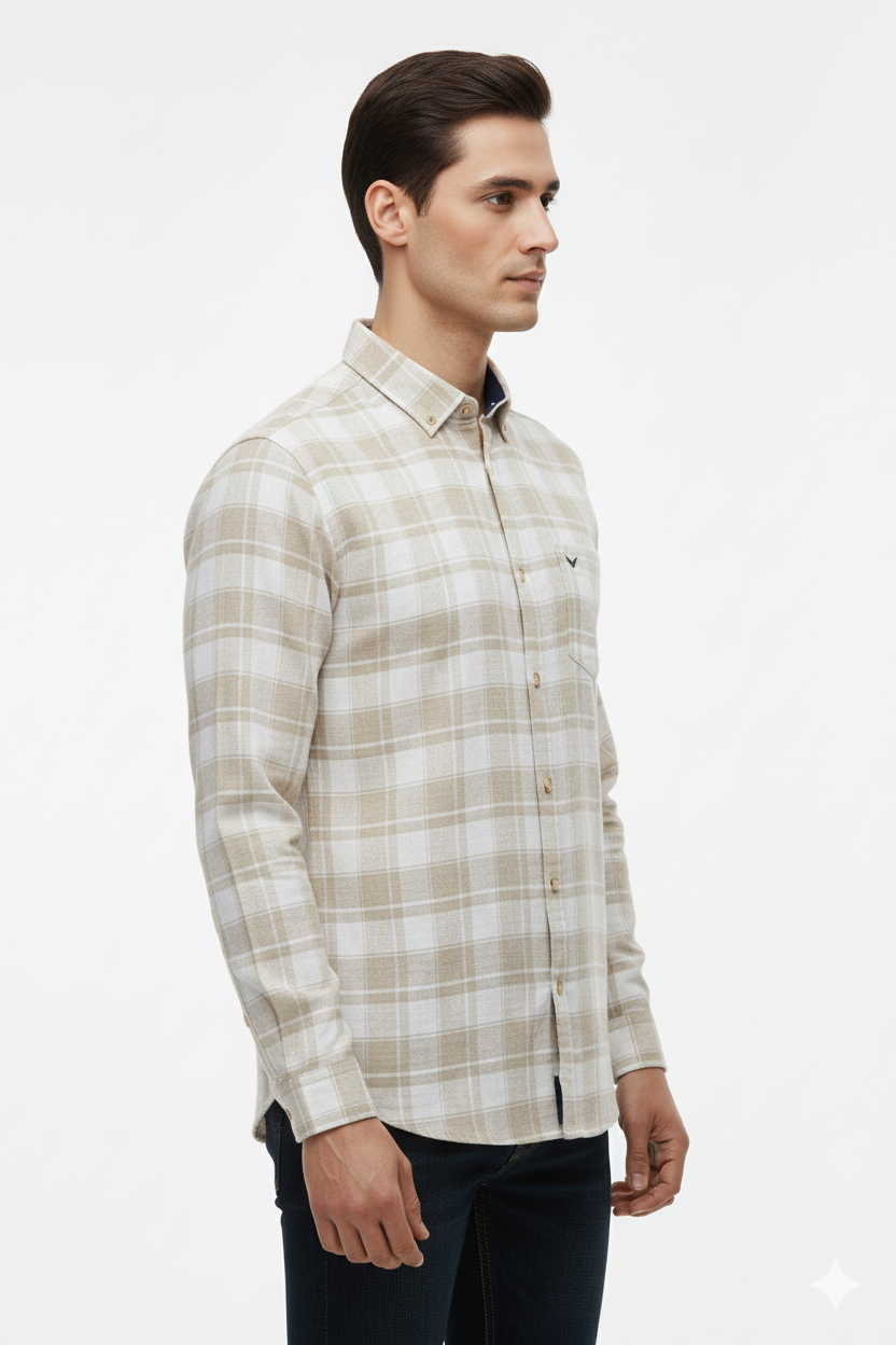 ₹599.00Original price was: ₹599.00.₹499.00Current price is: ₹499.00.Select optionsA soft and stylish beige checkered shirt featuring a button-down collar, full sleeves, and a comfortable slim-fit design—ideal for everyday casual and smart-casual looks.