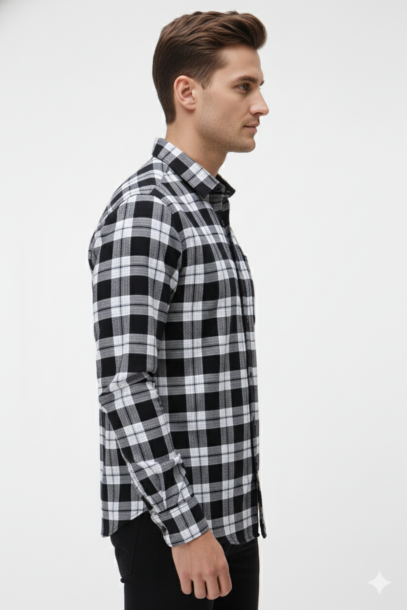 ₹599.00Original price was: ₹599.00.₹499.00Current price is: ₹499.00.Select optionsA stylish black and white large-check casual shirt for men, tailored from soft cotton fabric. Features full sleeves, a button-down front, and a chest pocket — perfect for both casual and semi-formal occasions.