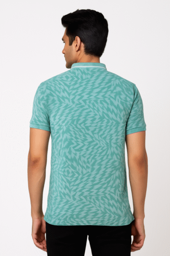 ₹599.00Original price was: ₹599.00.₹499.00Current price is: ₹499.00.Select optionsA fresh teal polo featuring an all‑over tonal geometric pattern with contrast tipping on the collar and cuffs. Crafted from a soft, breathable knit and cut in a comfortable regular fit, it includes a classic three‑button placket and side slits for easy movemen