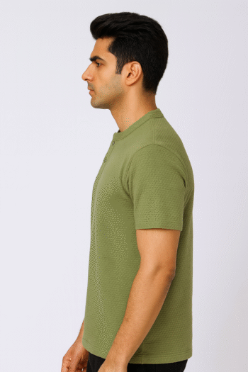 Men’s Olive Green Textured Henley T-Shirt