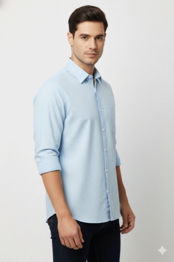 Men’s Solid Light Blue Casual Shirt – Cotton Blend, Full Sleeves with Pocket