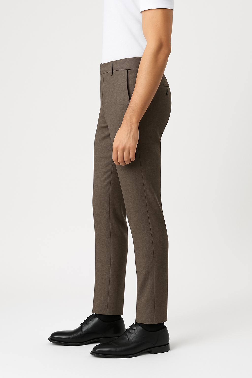 Refined coffee brown slim-fit trousers — tailored for all-day comfort and effortless office elegance.