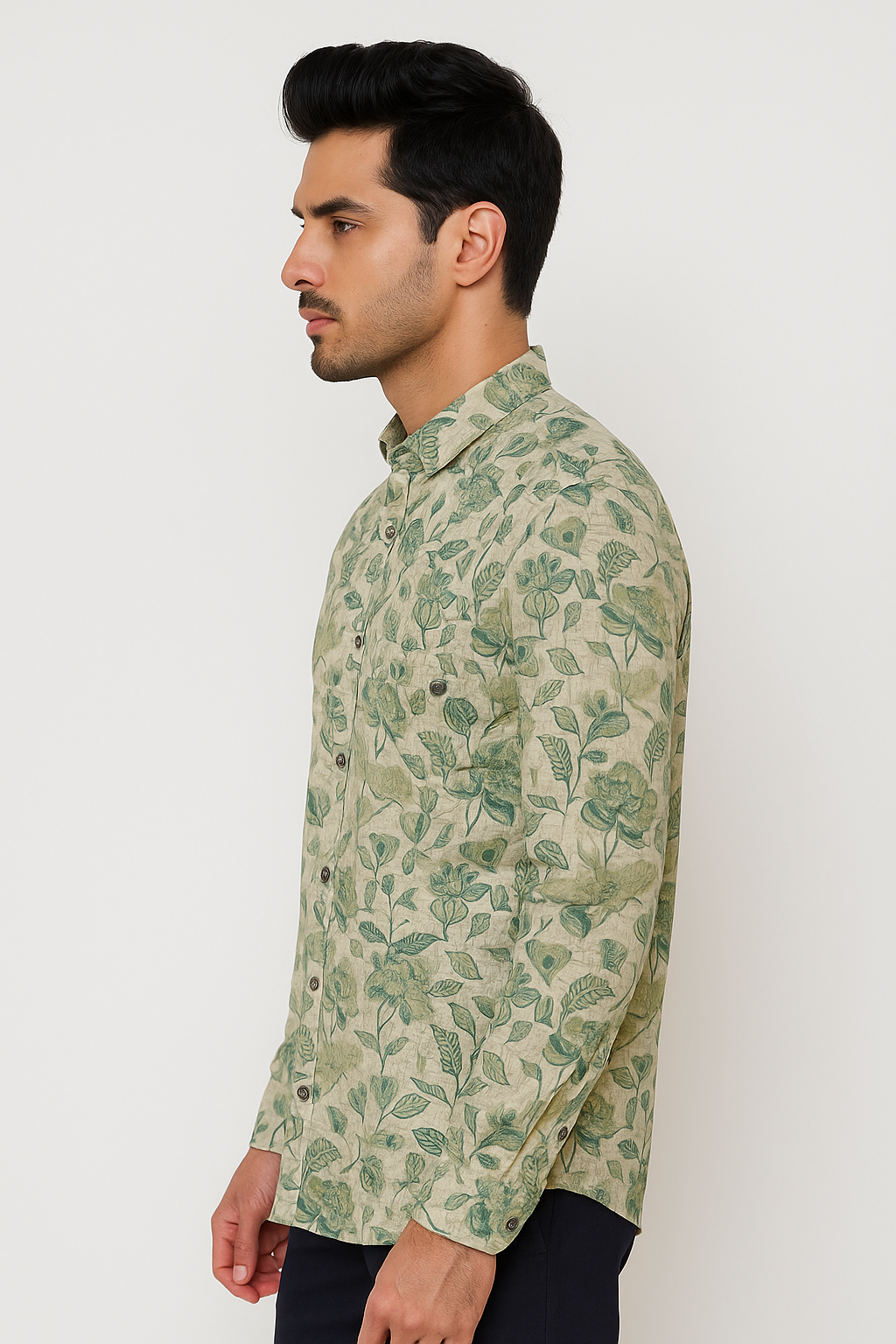 ₹599.00Original price was: ₹599.00.₹499.00Current price is: ₹499.00.Select optionsA stylish beige shirt featuring a green floral print, crafted from lightweight cotton fabric for a soft and breathable feel — perfect for casual outings and summer wear.
