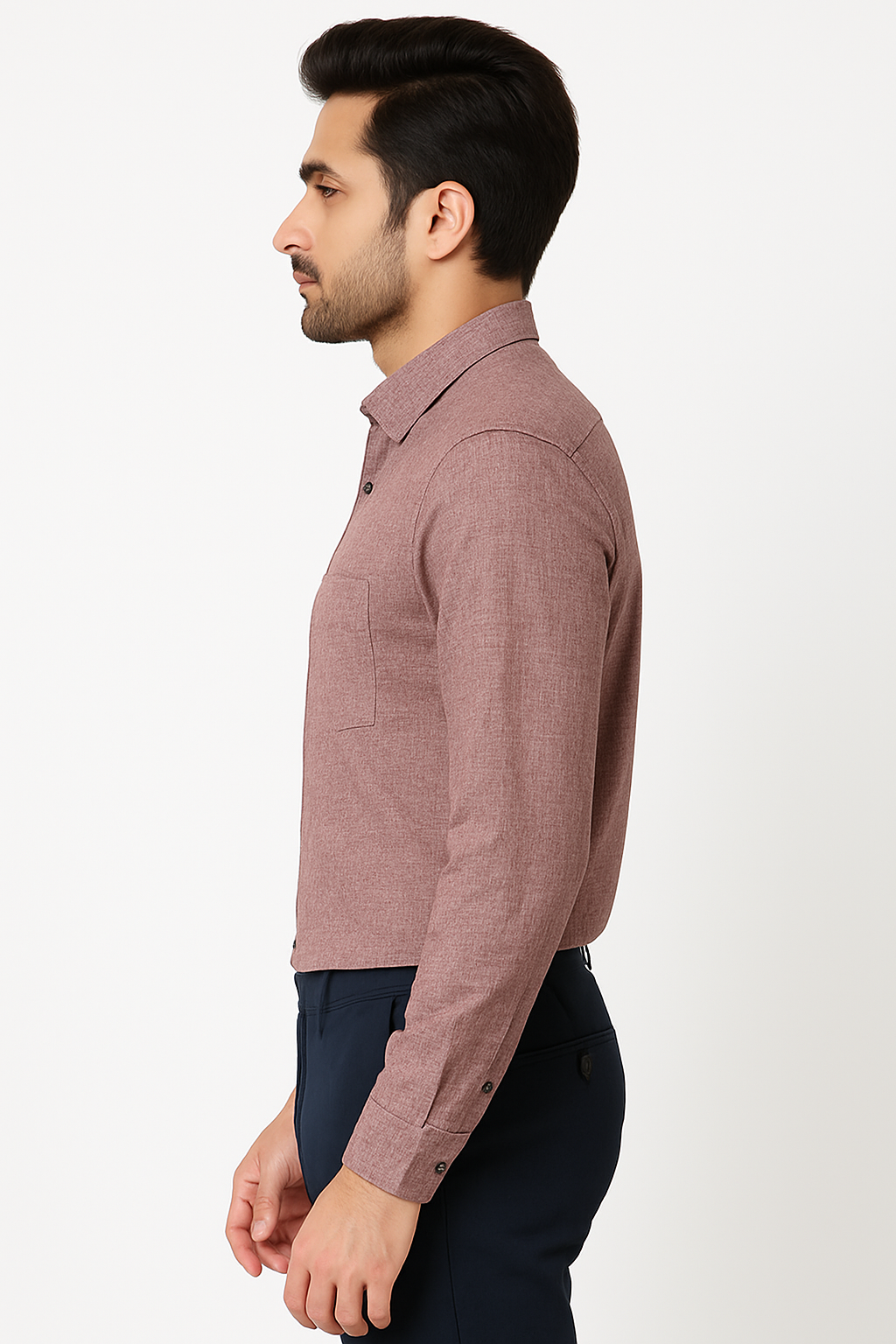 A classy maroon slim-fit shirt featuring an all-over micro print, full sleeves, and a modern button-down design—perfect for casual, semi-formal, and evening wear.