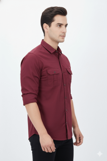 Men’s Maroon Dual Pocket Slim Fit Casual Shirt