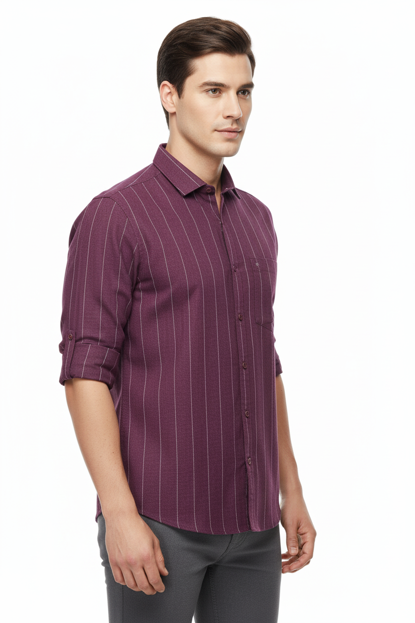 Men’s Maroon Slim Fit Pinstripe Shirt – Premium Cotton | Full Sleeves
