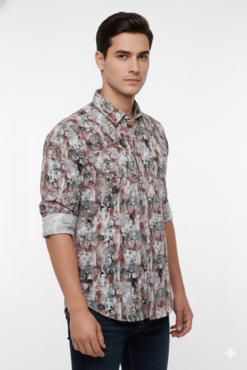 ₹599.00Original price was: ₹599.00.₹499.00Current price is: ₹499.00.Select optionsStylish slim-fit shirt featuring an artistic maroon and black abstract design, crafted from breathable cotton for a bold yet comfortable look.