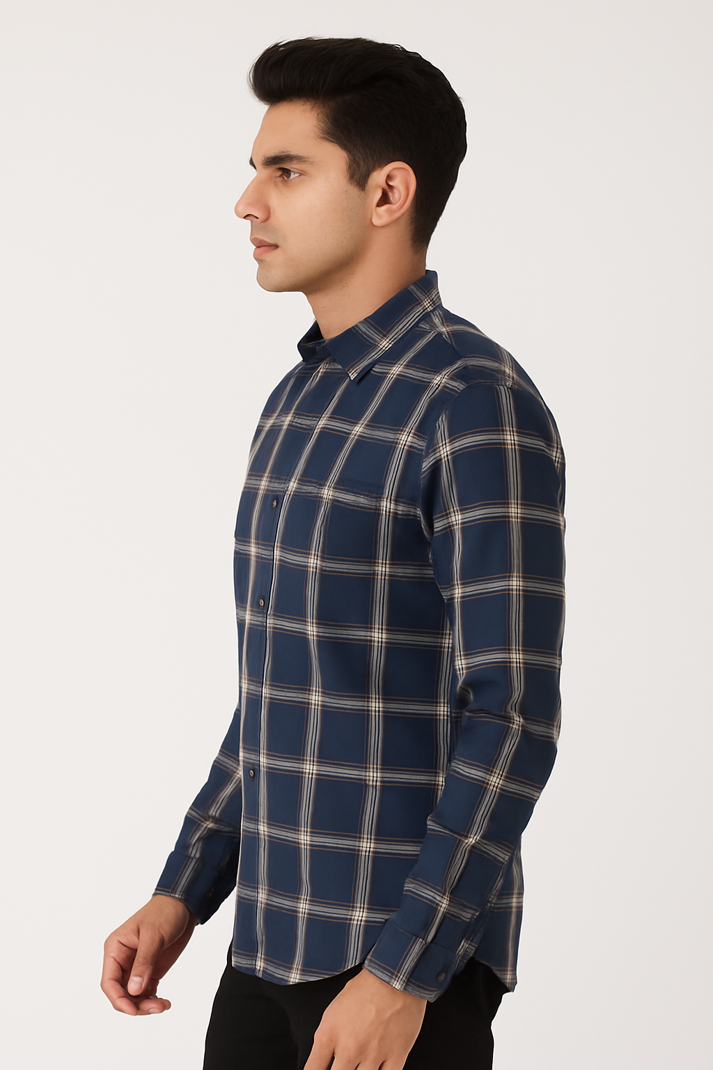 ₹599.00Original price was: ₹599.00.₹499.00Current price is: ₹499.00.Select optionsA stylish navy blue casual shirt with a classic white checked pattern, crafted for all-day comfort and smart style.